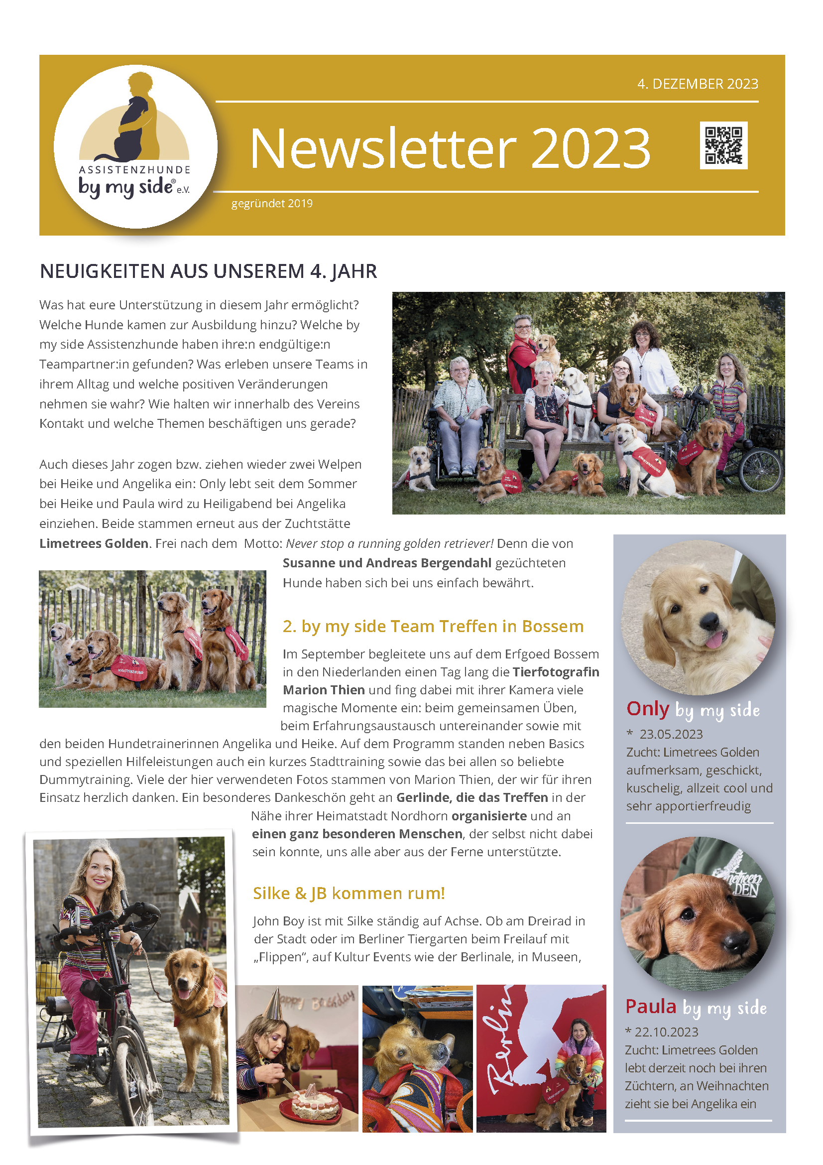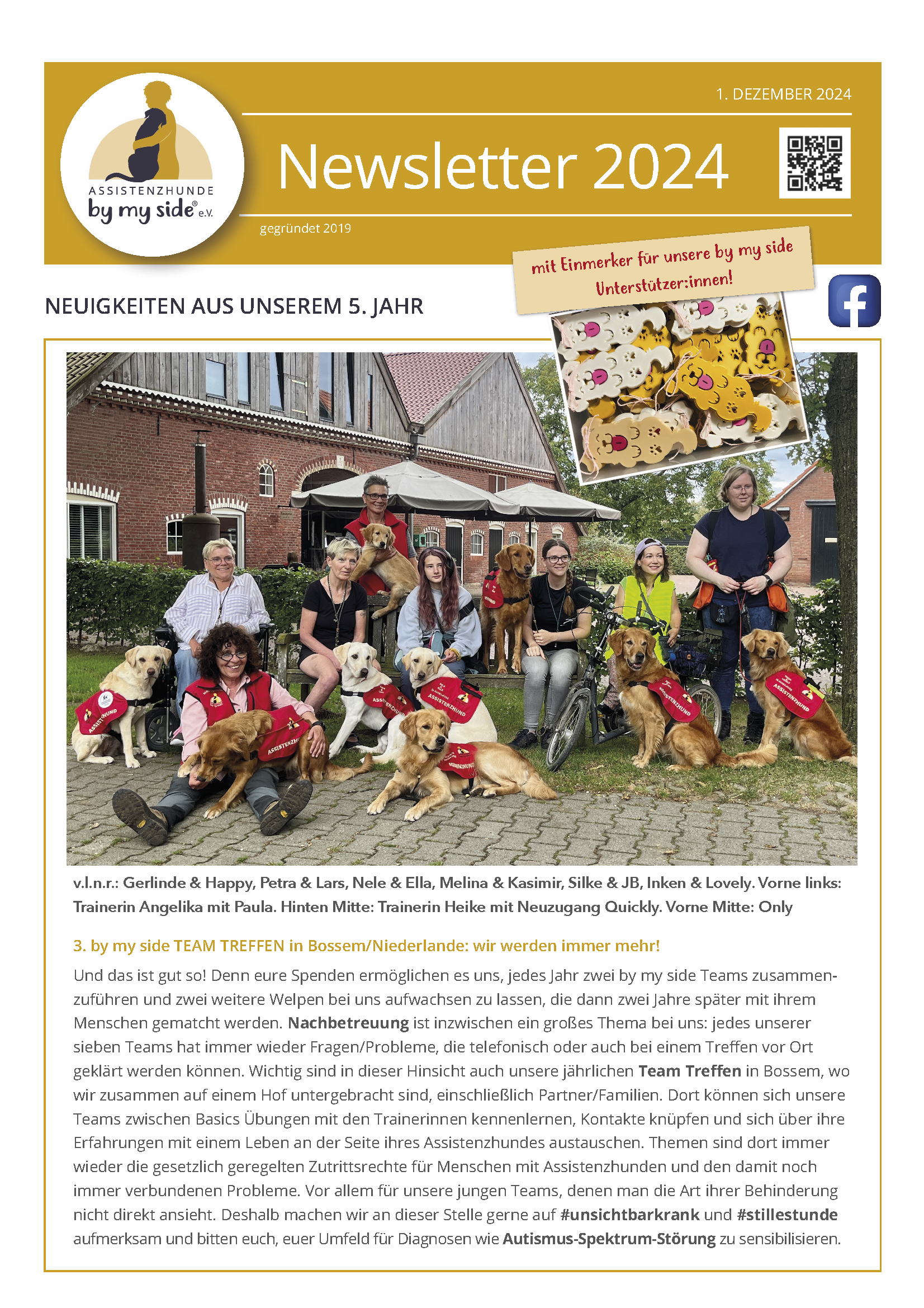 Im Jahr 2025 ist aus der bisherigen Jahrespost erstmals ein etwas umfangreicheres, kleines Magazin entstanden. Wie unsere Newsletter vorher wurde dieses vollständig in ehrenamtlicher „Women-Power“ erstellt und durch die zweckgebundene Spende einer langjährigen Unterstützerin ermöglicht. So stellen wir sicher, dass alle weiteren Spenden vollständig in die Ausbildung unserer Hunde und in die direkte Unterstützung unserer Teams fließen.